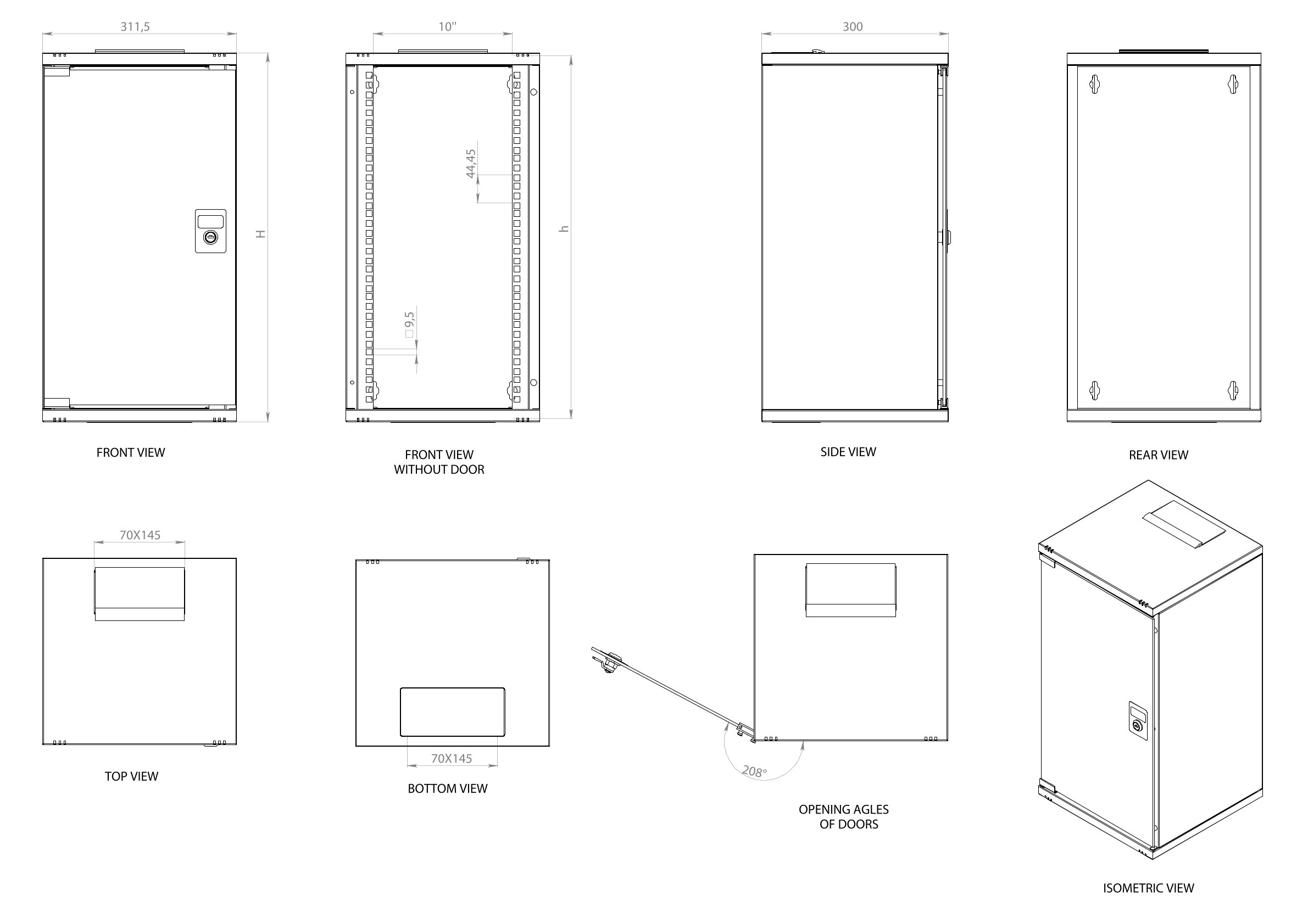 - Verstellbare Geräteschienen (3 Stufen): Tiefenverstellbare 10"-Montageschienen für Switches, Router, Patchpanel oder Dosenleisten.