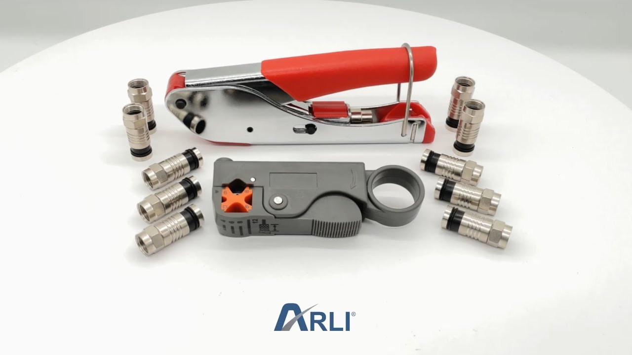 ARLI Set: Kompressionszange, Abisolierer und Kompressions-F-Stecker für Koaxialkabel