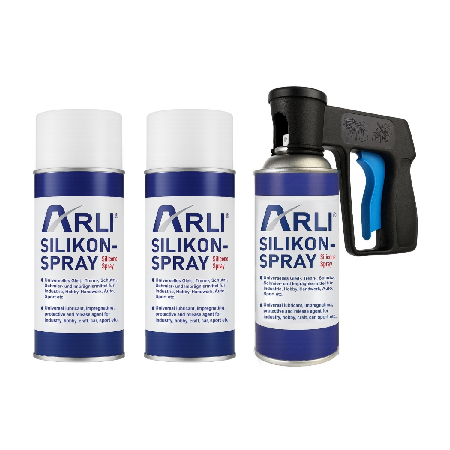 ARLI Silikon Spray 3x 400 ml + Pistolengriff für Sprühdosen Set Gleit Trenn Schmier Schutzmittel