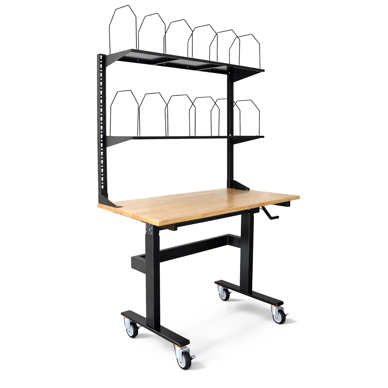 - Manuelle Höhenverstellung: Anpassung über Handkurbel für flexible Arbeitshöhen