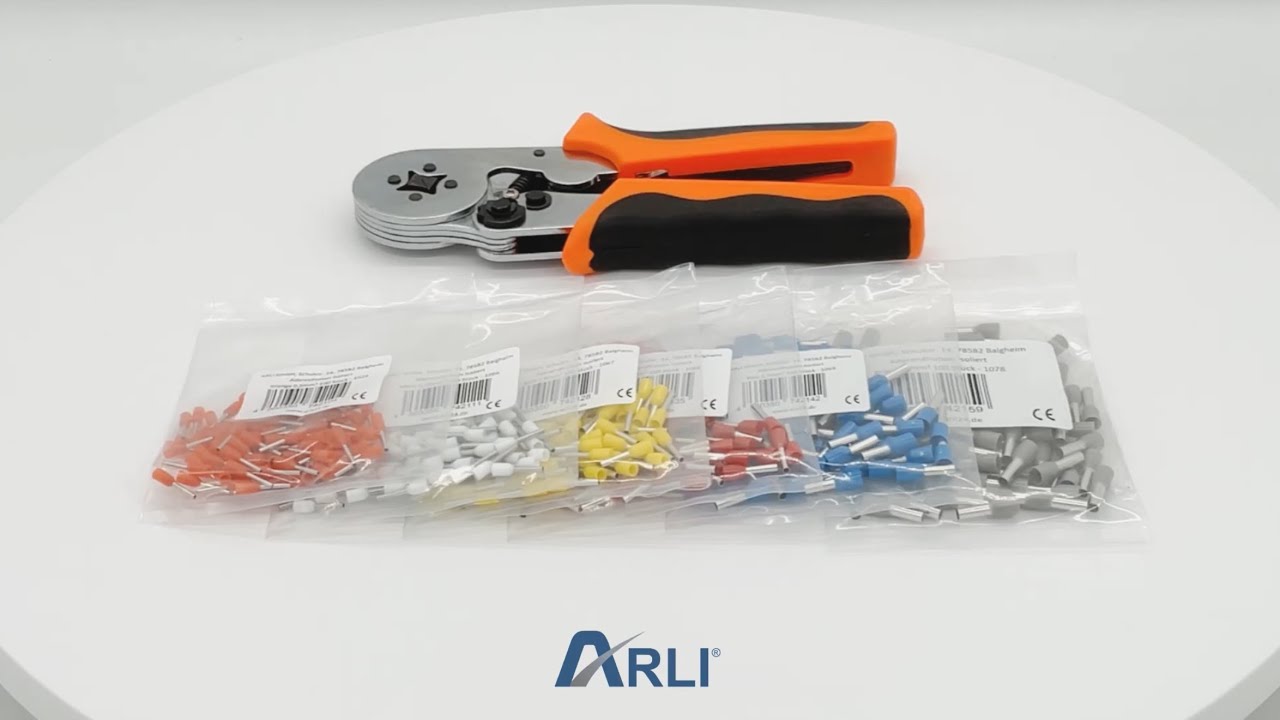 - Beschreibung ARLI Handcrimpzange 0,25 - 6 mm² inkl. 600 Aderendhülsen Set Mit dieser Handcrimpzange lassen sich Stiftkabelschuhe und Ade… Mehr