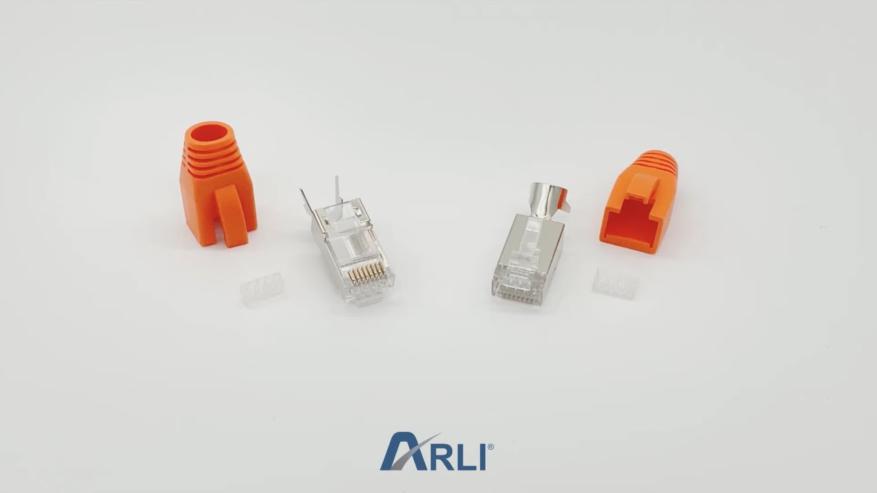 Produktinformationen "ARLI RJ45 Netzwerkstecker mit Zugentlastung, Einführhilfe und Tülle für Verlegekabel"