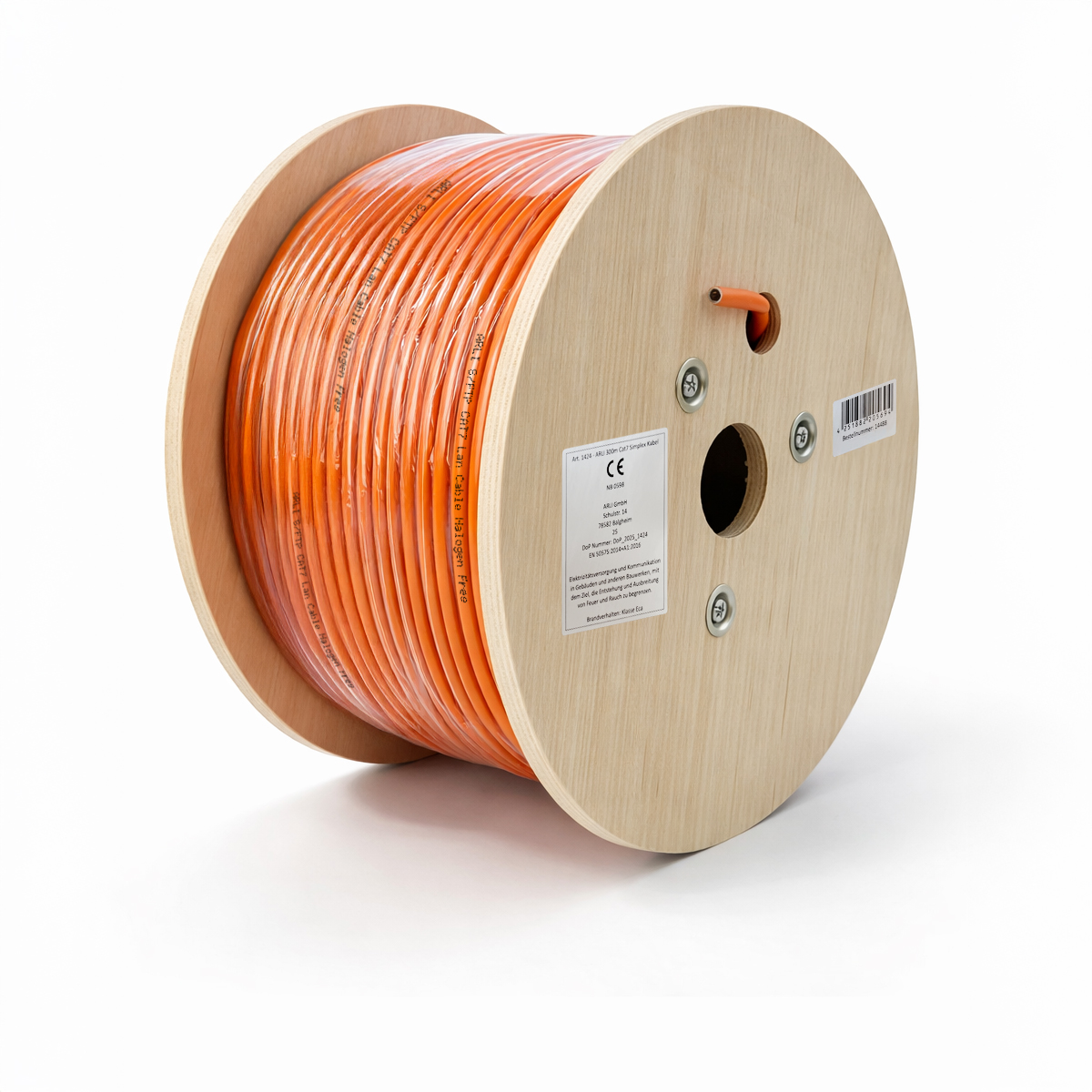 ARLI Cat7 Verlegekabel, 300 m, Netzwerkkabel, S/FTP, PIMF, halogenfrei, orange