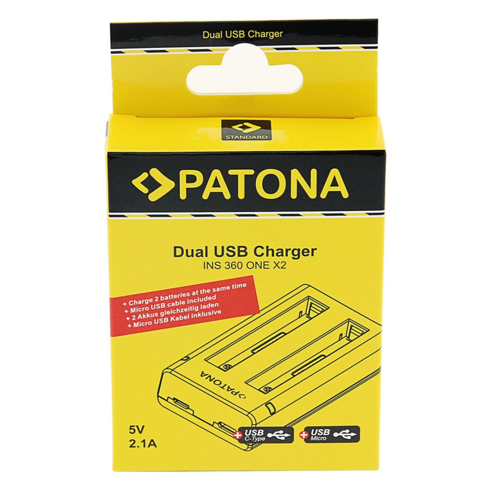 PATONA Dual Ladegerät für Insta360 One X2 360° Cam inkl. Micro-USB Kabel